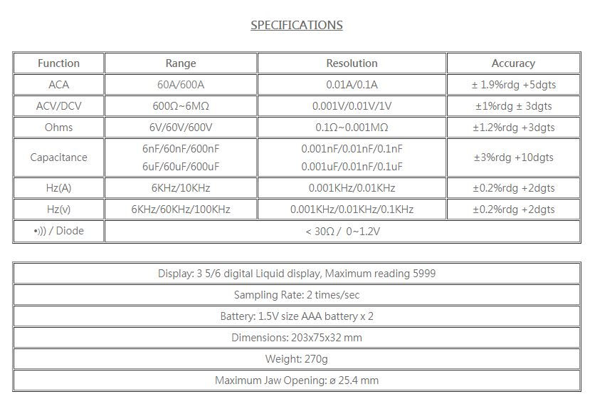 • AC/DC Voltage Measurement Up to 600V