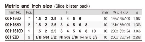 Các model thường gặp của sản phẩm Bộ lục giác Eight dòng 001-*D là : 001-156D, 001-158D, 001-1510D, 001-9ZD.