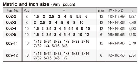 Các model thường gặp của sản phẩm Bộ lục giác Eight dòng 002-* là : 002-2, 002-3, 002-4, 002-5, 002-11, 002-12.