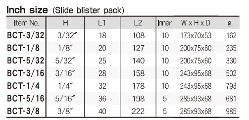 Các model thường gặp của sản phẩm Bộ lục giác Eight dòng BCT-* là : BCT-2.5, BCT-3, BCT-4, BCT-5, BCT-6, BCT-8, BCT-10, BCT-3/32, BCT-1/8, BCT-5/32, BCT-3/16, BCT-1/4, BCT-5/16, BCT-3/8.