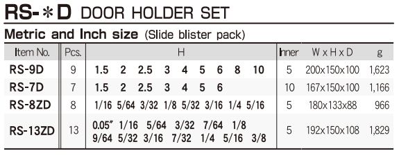 Các model của sản phẩm bộ lục giác Eight dòng RS-*D là : RS-8ZD, RS-7D, RS-13ZD, RS-9D.