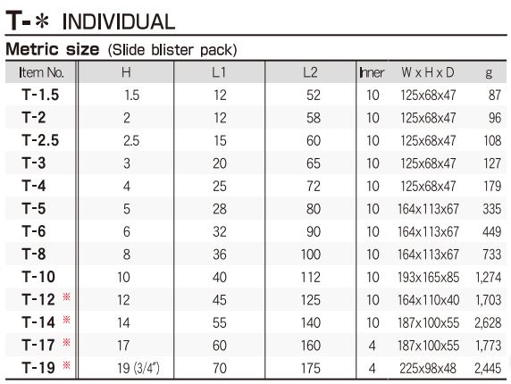 Các model thường gặp của sản phẩm Bộ lục giác Eight dòng TS-* là : T-6, T-8, T-1.5, T-2, T-2.5, T-3, T-4, T-5, T-10, T-12, T-14, T-17, T-19.