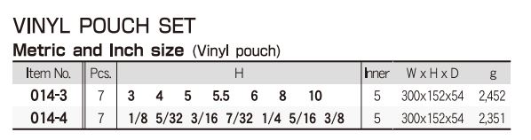 Các model thường gặp của dòng sản phẩm Bộ lục giác Eight (Extra long length) dòng 014-* là : 014-1, 014-2, 014-3, 014-4, 014-9.