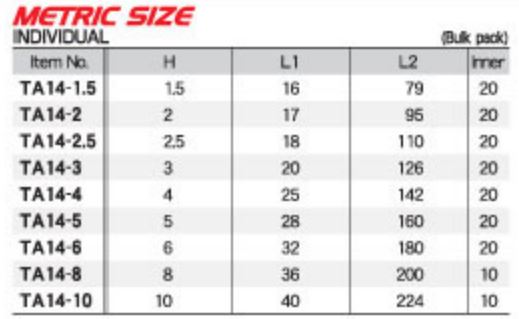 Hans Việt Nam chuyên cung cấp Bộ lục giác hệ mét Eight dòng TA14-* tại Việt Nam.