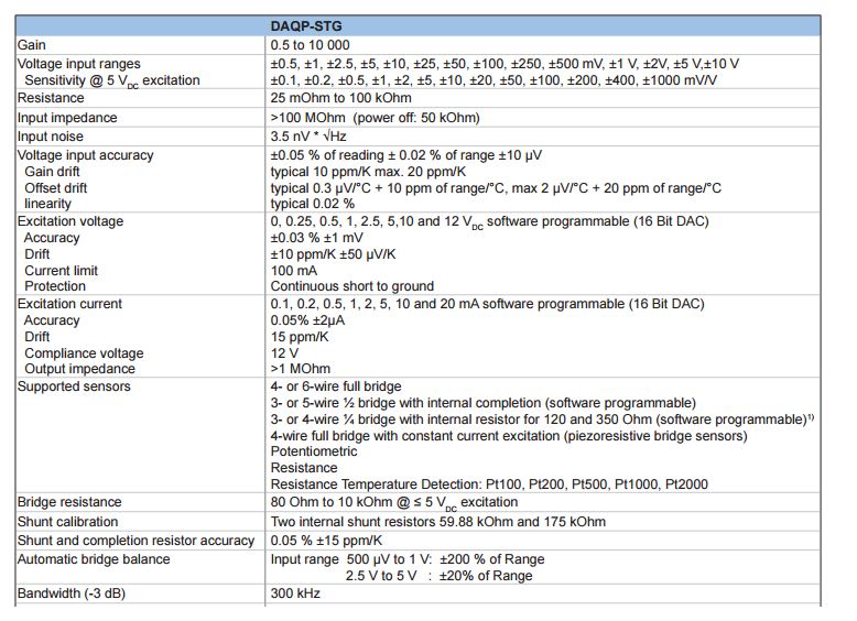 Strain gauge, bridge sensors: ±0.1 to ±1000 mV/V (@ 5 VDCexc)