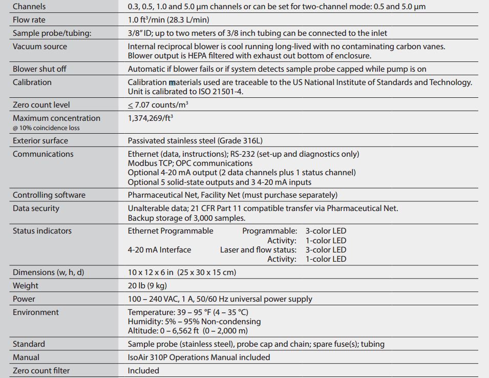 The IsoAir 310P là cảm biến hạt sol khí giúp theo dõi các hạt trong khí một cách dễ dàng tại các địa điểm từ xa hoặc trong khu vực hạn chế. Giám sát thời gian thực và cho thông báo một cách nhanh chóng các dị thường, phát hiện 0,5 và 5.0μm cho GMP và FDA tuân thủ.