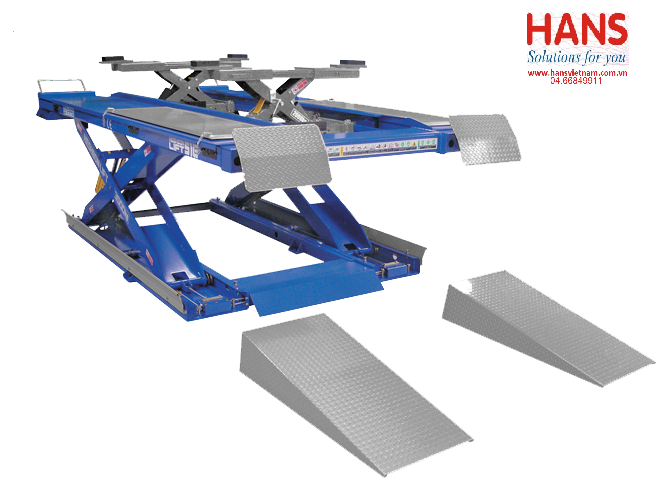 Điện thế & Công suất Motor: - 1pha: 2.5 HP, 4P, 220V, 50/60Hz. - 3pha: 2HP,4P,380V,50/60Hz. Bàng nâng phẳng, có kích phụ chỉnh góc lái liên kết bằng bánh xe. Sức nâng tổng thể (kg): Khung 3500/ Kích 2000 Bề rộng mỗi tấm đỡ (mm): 530 Chiều dài của mỗi tấm đỡ (mm): 3977 Khoảng cách giữa 2 tấm đỡ (mm): 930 Chiều cao nâng max (mm): Khung 1780/ Kích 455 Kích thước tổng thể (mm): 5660(L)x2040(W)x265(H)