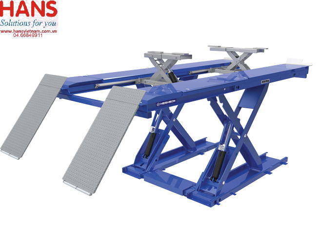 Điện thế & Công suất Motor: - 1pha: 2.5 HP, 4P, 220V, 60Hz. - 3pha: 2HP,4P,380V,50/60Hz. Bàng nâng phẳng, có kích phụ chỉnh góc lái. Sức nâng tổng thể (kg): Khung 4000/ Kích 2000 Bề rộng mỗi tấm đỡ (mm): 570 Chiều dài của mỗi tấm đỡ (mm): 4500 Khoảng cách giữa 2 tấm đỡ (mm): 1010 Chiều cao nâng min/max (mm): 260/1900 Kích thước tổng thể (mm): 5906(L)x2150(W)x260(H)