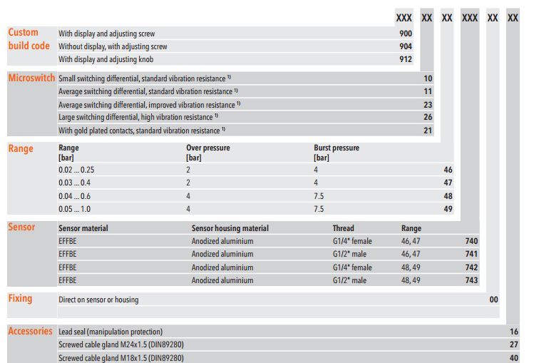 Công tắc áp suất Trafag P/PS 900/904/912 (0 ... 0.2 to 0 ... 25 bar)