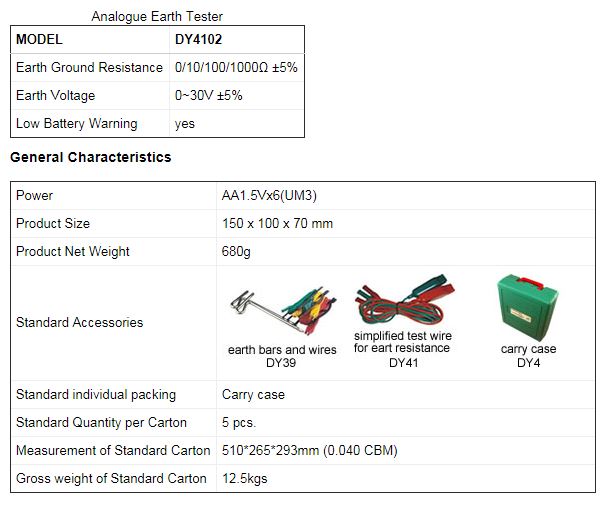 Thông số kỹ thuậtĐo điện trở đất từ 0,01Ω đến 2000Ω với độ phân giải 0,01Ω