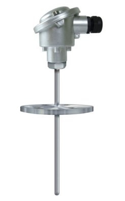 Cảm biến sensor nhiệt độ với vỏ bọc bằng thép không gỉ và gắn mặt bích. Phạm vi đo: từ -80°C đến +400°C (PT100 và PT1000), từ -20 ° C đến +120 ° C (NTC).