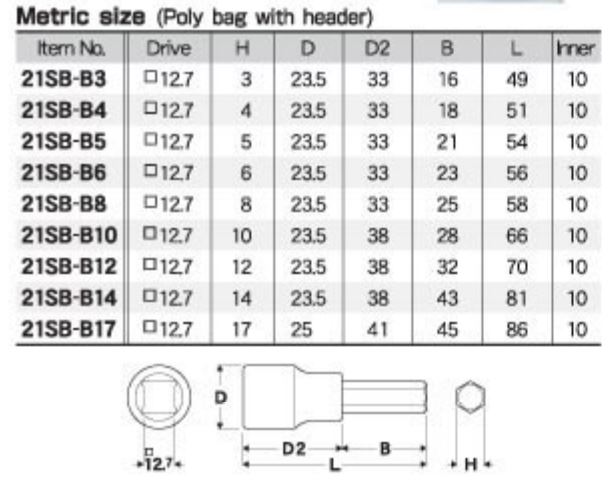 Hans Việt Nam chuyên cung cấp Đầu lục giác Eight dòng 21SB-* tại Việt Nam.