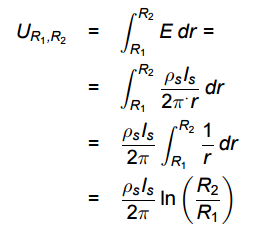 ở đây r là hiệu của R2 và R1. Một điều quan trọng cần nhớ là khi kiểm tra điện trở suất bề mặt hay điện trở bề mặt là giả định rằng tất cả dòng chảy giữa 2 điện cực không thâm nhập sâu vào bên trong bề mặt vật liệu cần đo. Thêm vào nữa để đảm bảo các dòng điện bề mặt được đo đúng, một vài công nghệ tiên tiến cho việc đo điện trở suất bề mặt đã được phát triển [1,2,4]. Định luật ohm miêu tả mối liên hệ giữa mật độ dòng J và mật độ trường electron E. Điều này cũng phù hợp cho dòng điện bề mặt.