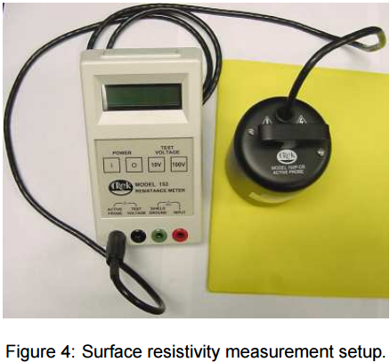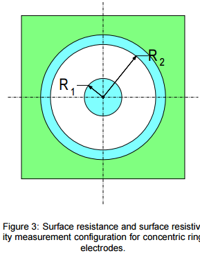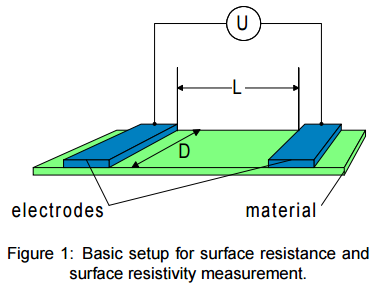 Điện trở bề mặt: Rs là tỉ số giữa điện áp DC tới dòng điện Is chảy giữa 2 điện cực với cấu hình yêu cầu là 2 điện cực này ở cùng một phía(hình 1).