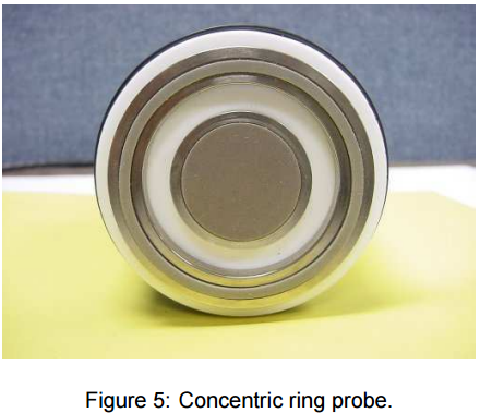 Mối liên hệ giữa điện trở suất bề mặt và điện trở bề mặt cho đầu đo vòng đồng tâm có thể được tìm ra nhờ việc xác định mật độ dòng bề mặt trong khoảng giữa 2 vòng(hình 3)