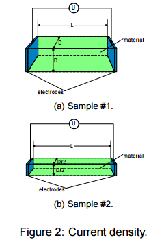 Chúng ta có khả năng thiết lập mối liên hệ giữa điện trở suất và điện trở bề mặt cho dù sử dụng bất cứ loại điện cực đo nào đi chăng nữa. Ý tưởng về mật độ dòng điện rất hữu dụng cho việc hiểu mối liên hệ này. Hướng về 2 mẫu của một vật liệu được thể hiện ở hình 2, với điện áp U là hằng số và cả 2 mẫu được tạo ra từ cùng một vật liệu, dòng chảy qua mẫu sẽ khác nhau, thanh dày hơn sẽ dẫn tốt hơn thanh mỏng.