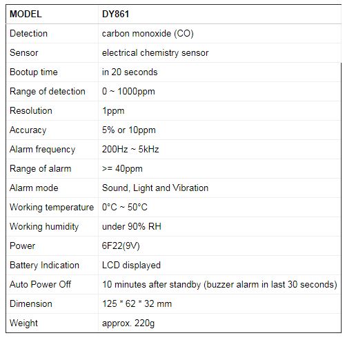 Dễ đọc 6999 đếm ngược đèn nền hiển thị mức khí carbon monoxide từ 0 đến 1000ppm