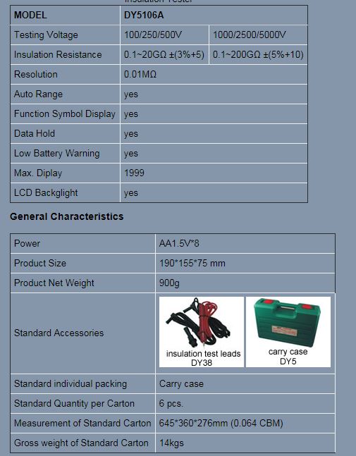 Hans Việt Nam chuyên cung cấp sản phẩm Dụng cụ kiểm tra điện trở cách điện DUOYI dòng DY5106A tại Việt Nam.