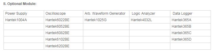 Khung máy hỗ trợ các sản phẩm mô-đun USB sau: Máy tạo dao động, Đồng hồ vạn năng, Máy phân tích logic, Bộ nguồn DC, Arb. Máy phát dạng sóng, Bộ đếm tần số, Máy đo cường độ trường ...