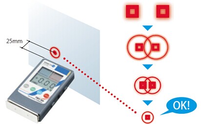 4:Chú ý đo đúng khoảng cách, để khoảng cách ở vị trí khi nào 2 đường tròn hiển thị của máy đồng tâm là được