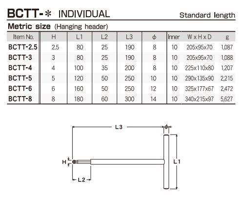 Các model của sản phẩm Lục giác loại chữ T Eight dòng BCTT-* là :BCTT-2.5, BCTT-3, BCTT-4, BCTT-5, BCTT-6, BCTT-8.