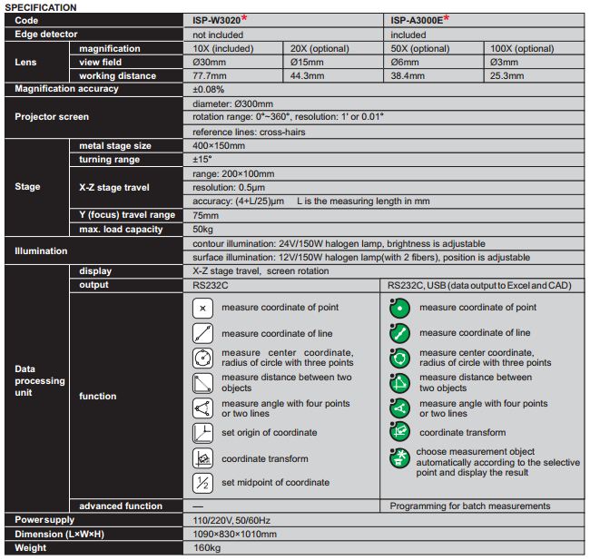 Máy chiếu biên dạng phương ngang Insize ISP-W3020