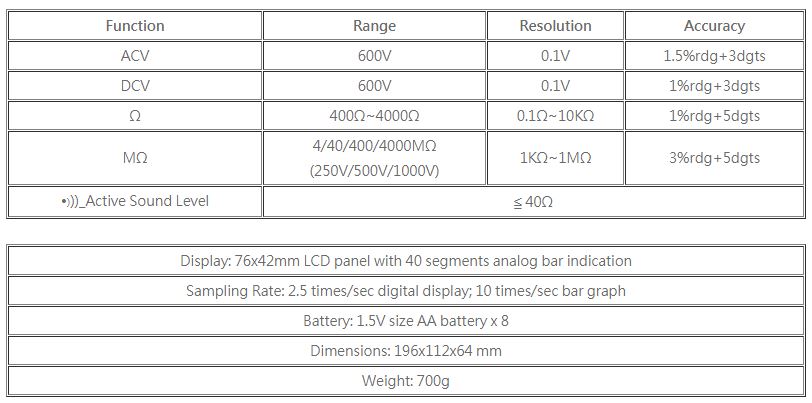 • Auto Range For MΩ & Ω