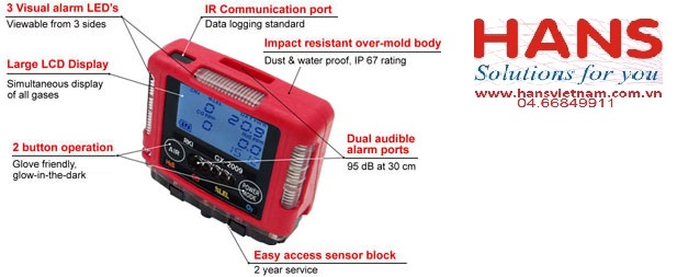 • Single gas LEL, O2, CO, H2S