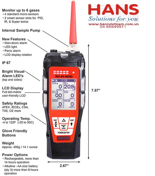 Máy đo khí đa năng lên đến 6 loại khí RKI GX-6000