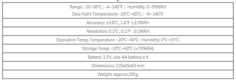 • Dual Displays: Primary Display For Humidity ; Secondary Displays For Temperature