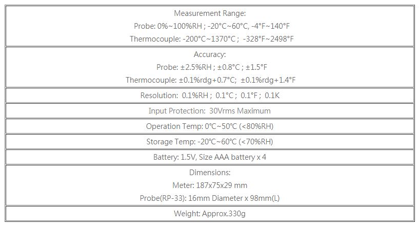 • Unit °C, °F, K, RH