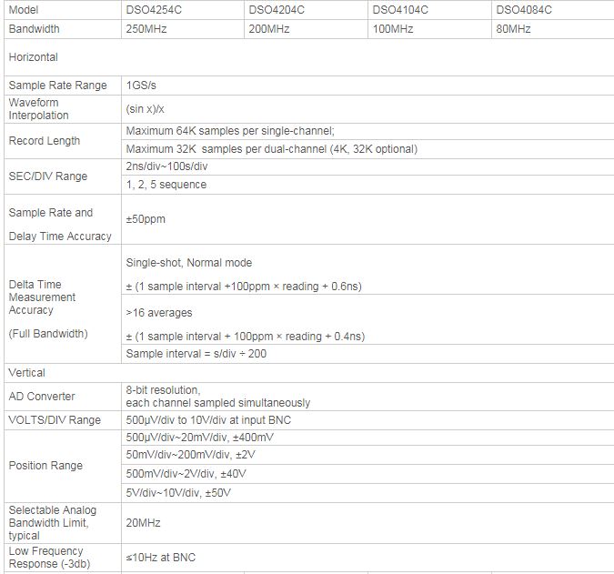 Băng thông 80-250 MHz, phạm vi tối thiểu 500μV / div , tốc độ mẫu 1GS / s.