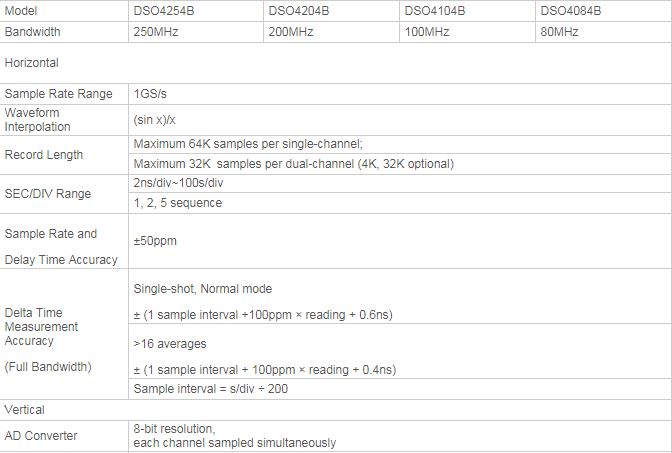 Băng thông 80-250 MHz, phạm vi tối thiểu 500μV / div , tốc độ mẫu 1GS / s.
