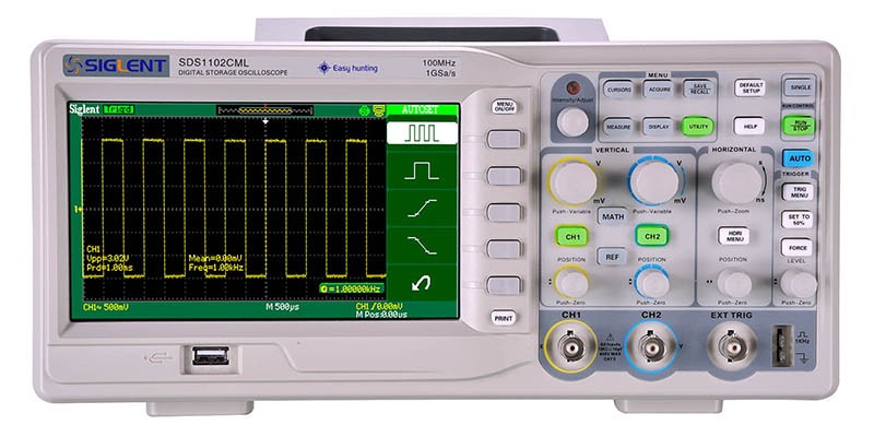 Siglent SDS1102CML+ với mức băng thông 100MHz, 2 kênh đo là một trong những dòng sản phẩm bán chạy nhất của Siglent.