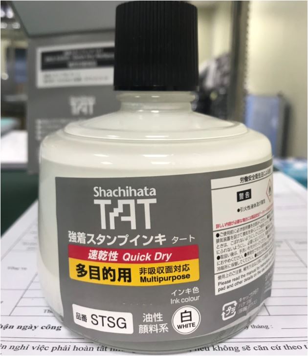 Hans Việt nam chuyên cung cấp Mực đóng lên mọi chất liệu STSG-3 TAT Shachihata Indelible Ink, White 330ml