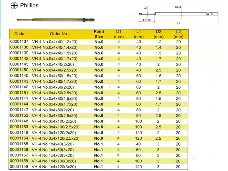 Hans Việt Nam chuyên cung cấp Mũi vít OHMI Vh-4 No.0x4x40 60 80 100 120(2x20) Thông số kỹ thuật: