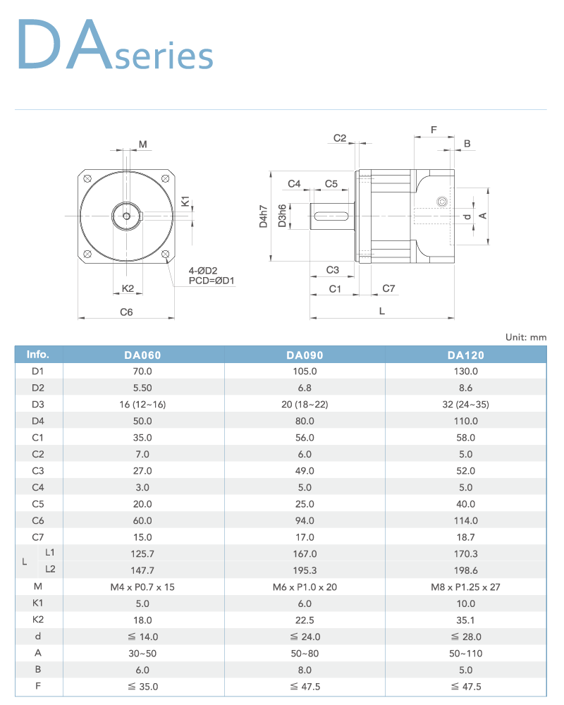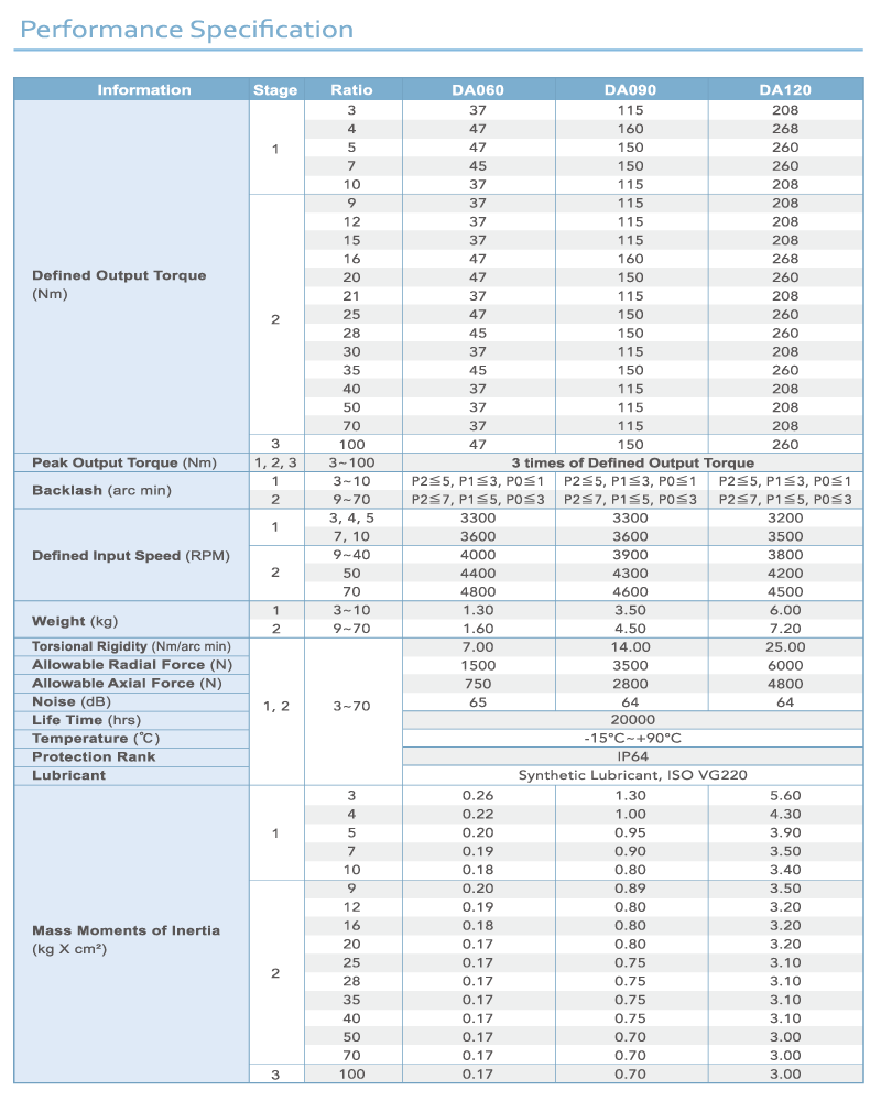 The DA series provide you with a wide torque spectrum which is dedicated to high performance application that combi-nation of speed,precision and high-level duty cycle is required.