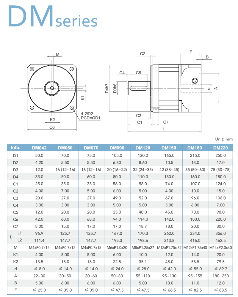 Reduced backlash,easy motor assembly,smooth operation,and intergrated product configurations as standard options are the outstanding features of DM series.