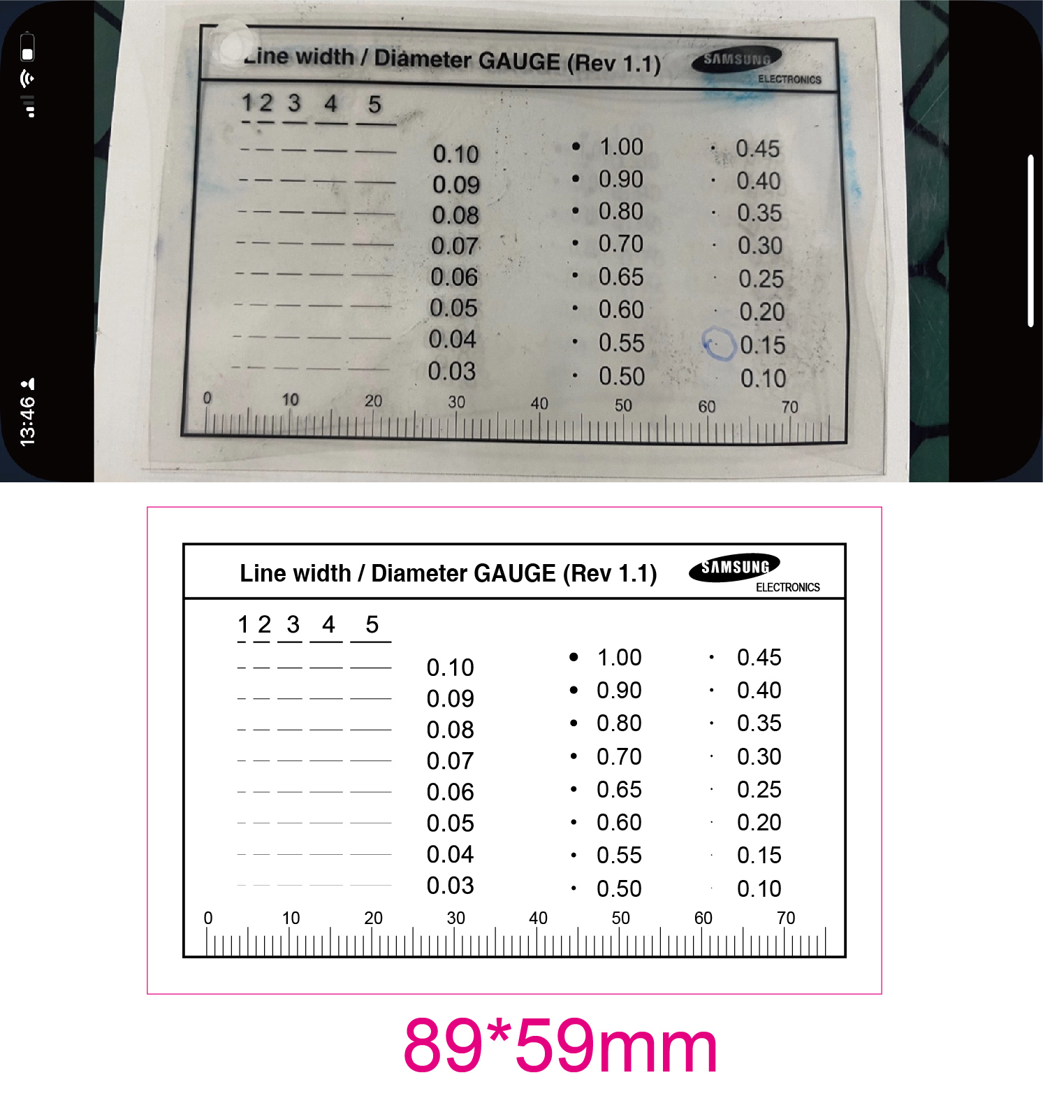 Hans Việt Nam chuyên cung cấp Thẻ đo lường (film gauge) Samsung Line width/ Diameter GAUGE (Rev 1.1) tại Việt Nam, thẻ đo lường còn được gọi với nhiều tên khác nhau như: