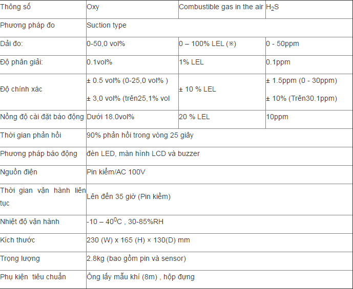 Máy cho phép đó cùng lúc 3 chỉ tiêu O2 và Combustible và H2S, với các chức năng: