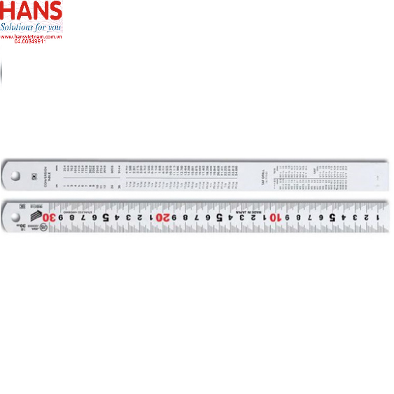 Mặt sau có bảng quy đổi nhanh hệ in sang hệ mét (ví dụ: " = 25.4mm)